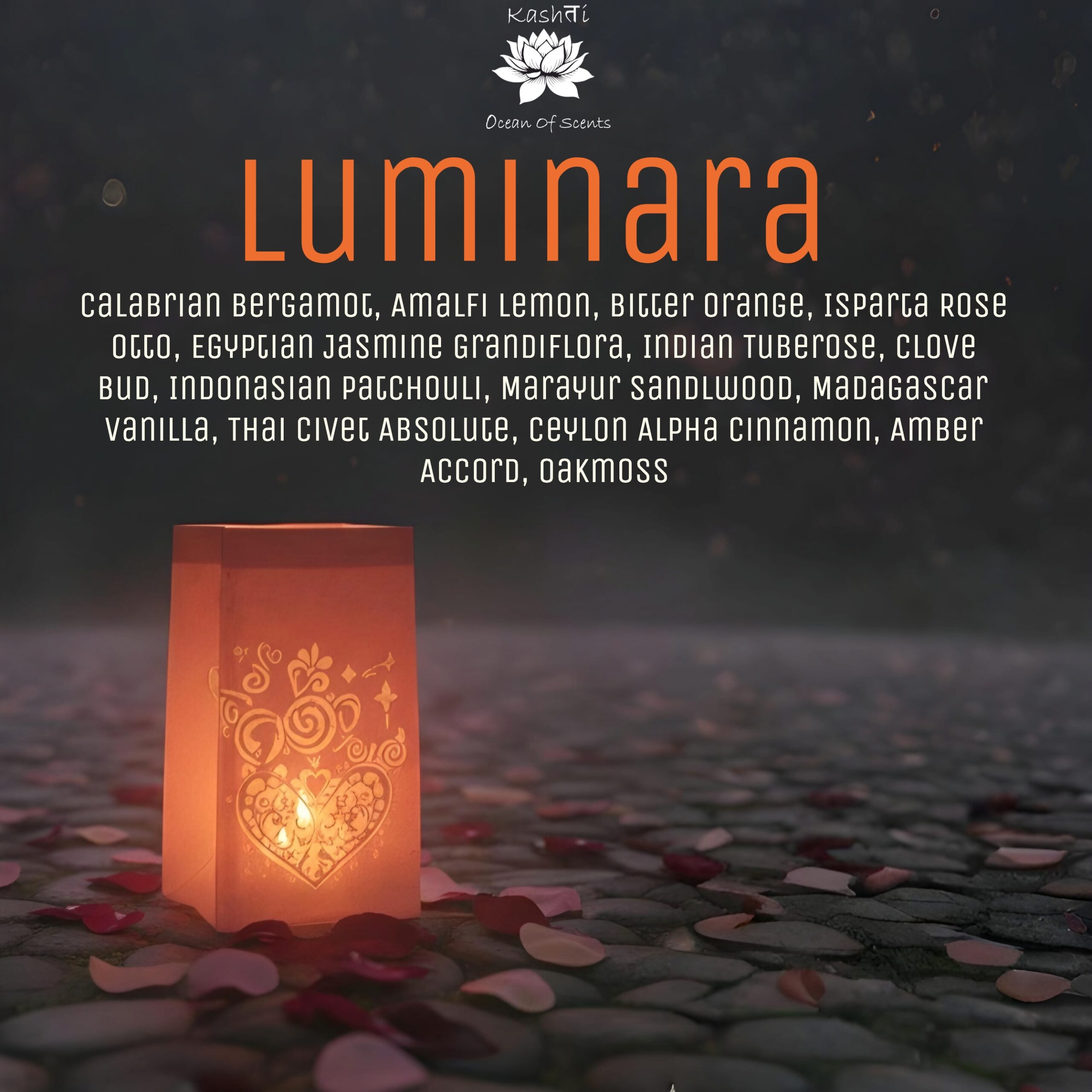 Luminara arrives like dawn - an incandescent whisper that lifts the ordinary into light. It opens in a citrus fanfare: Calabrian bergamot, Amalfi lemon and bitter orange sparkle together, bright and immediate, a clean breath that clears the air and wakes the senses.